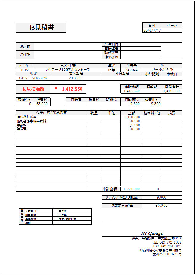 ■車検が残っていない車両の見積もり例