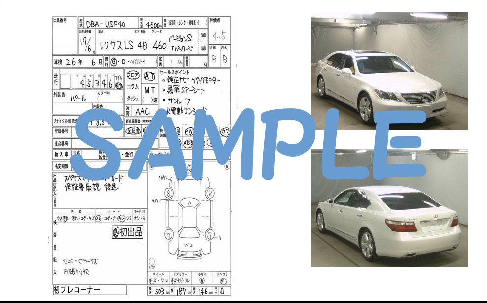 出品表サンプル ↓ 会員登録後、出品車両をご確認いただけます。 ↓ ![]() ※氏名、メールアドレスのみでご登録いただけます。 |